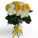 Склад: Добірні білі та жовті троянди преміальних сортів з великими бутонами.