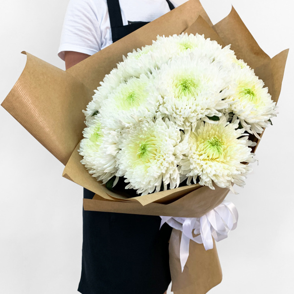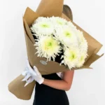 Букет з 11 білих хризантем в крафті